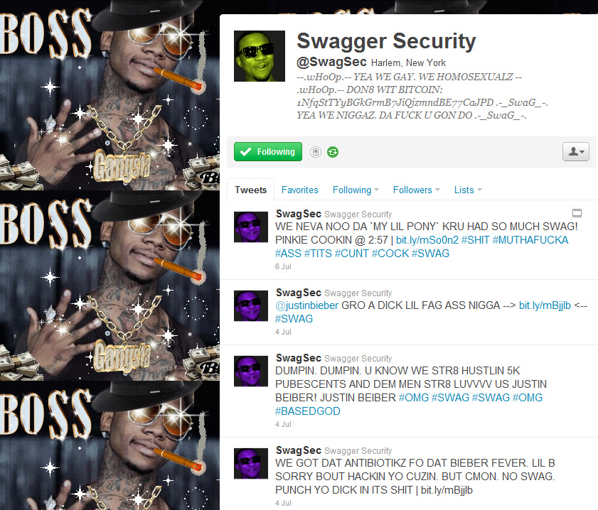 Online cracktivist group Swagger Security has declared all-out war on Justin Bieber, d0xing anyone who looks like a fan. “Thirty million trillion 8 year old bitches” have been d0xed so far.