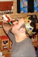 Maddox chugs a tiny bottle of not-so-hot sauce while wearing a fake plastic crown that doesn't even look remotely real. What a faggot.
