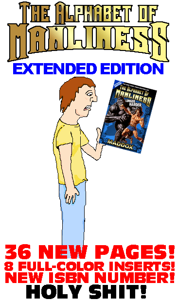 To promote a re-release of his first book, The Alphabet of Manliness “Extended Edition”, Maddox created what is possibly the gayest and most poorly drawn animation of all time.