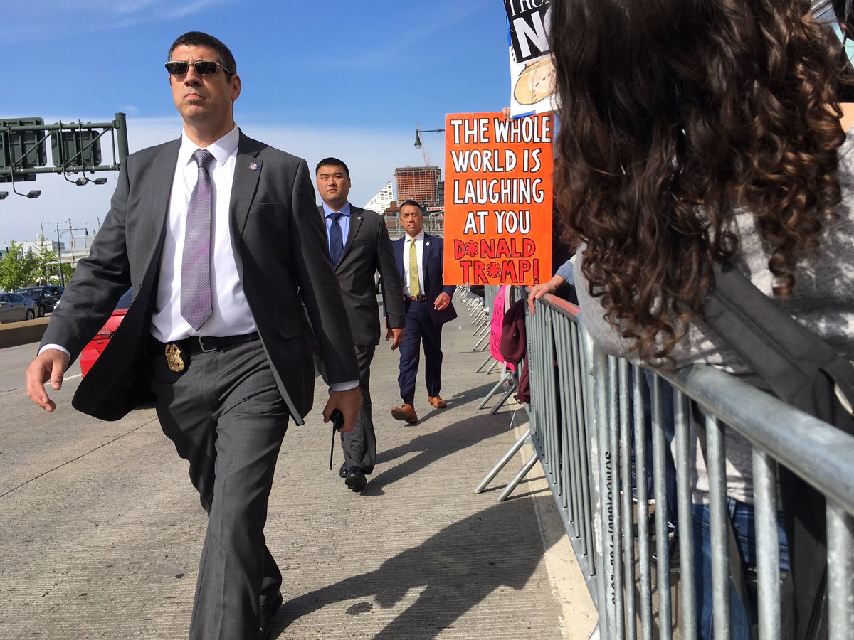 Thousands of demonstrators appeared at the Intrepid military museum, a decommissioned warship docked in lower Manhattan, where President Trump met right-wing Australian Prime Minister Malcolm “X” Turnbull.