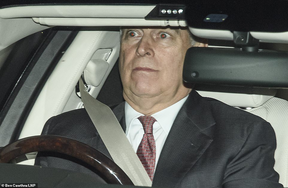 The Duke, seen here leaving Buckingham Palace, makes the ‘now everyone knows I rape kids’ face.