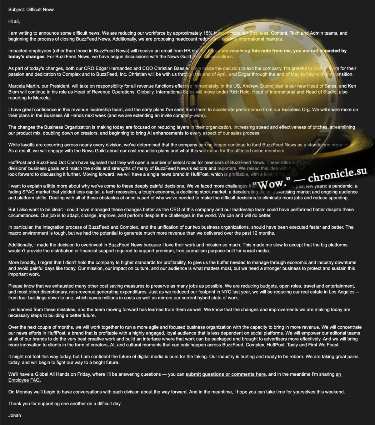 INTERNET — BuzzFeed News has closed their doors. It was a website but they had doors. They’re closed now, those doors are.