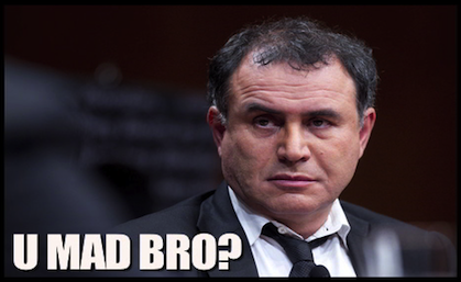Nouriel: I can afford to be. I’m Doctor Doom damn it! (grabs wine bottle) More wine?