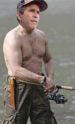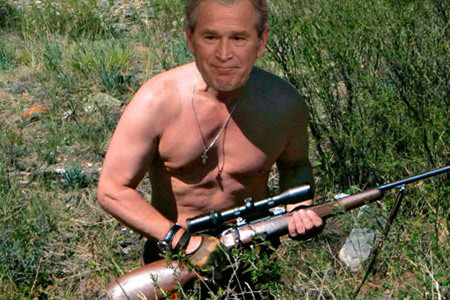 New photos surfaced of a strong, bear-like President Bush dressed for hunting, knowing it will inspire Americans to take up arms against the Red menace in the Ukraine.