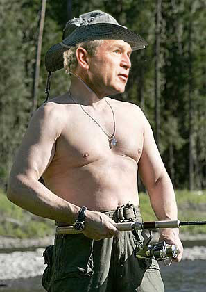 With a little help from his TerrorMax, George “Putin” Bush scans the horizon for Russkis