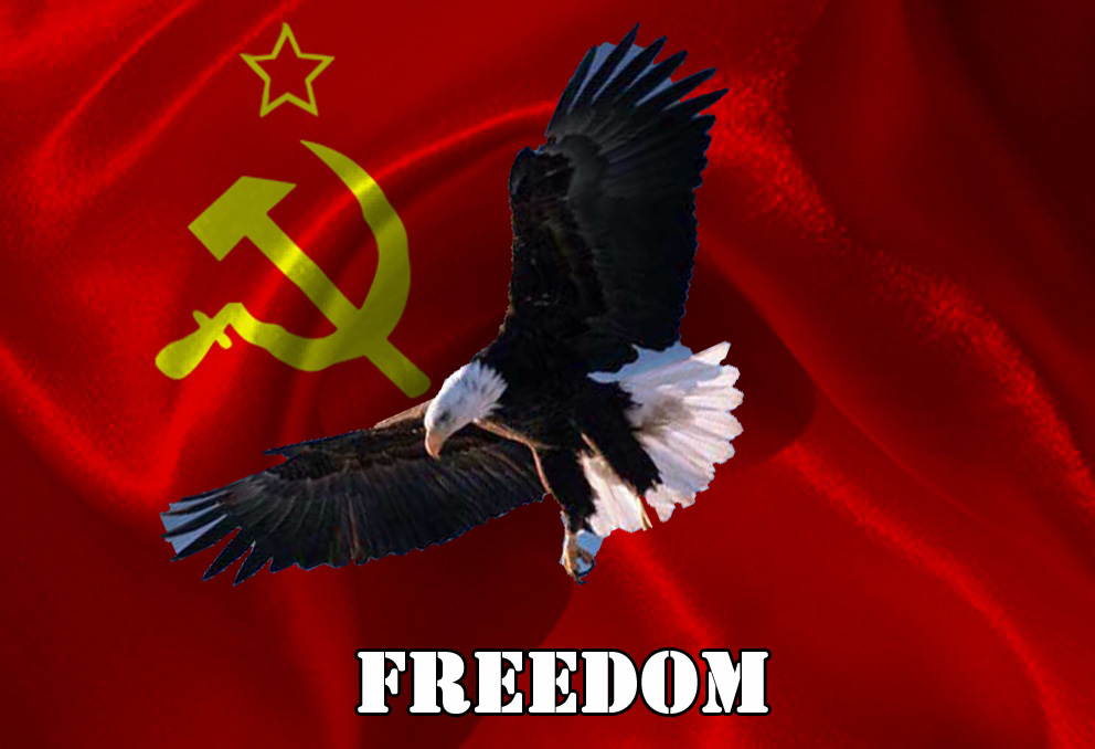 Soviet-Russia was well-represented. Enthusiastic Communists held a flag over the banner facing toward the podium. They said it represents freedom. Our reporter agreed.